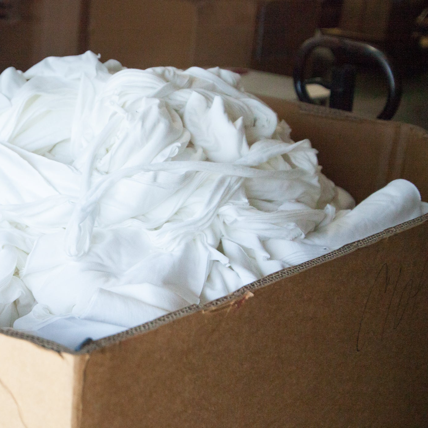 At Solid State Clothing, we're serious about fighting this enormous problem. We collect and save all the fabric scraps left after our t-shirts are cut and sewn. We use some of them for testing, and the rest are recycled at Material Return, a textile recycling facility in Morganton, NC.